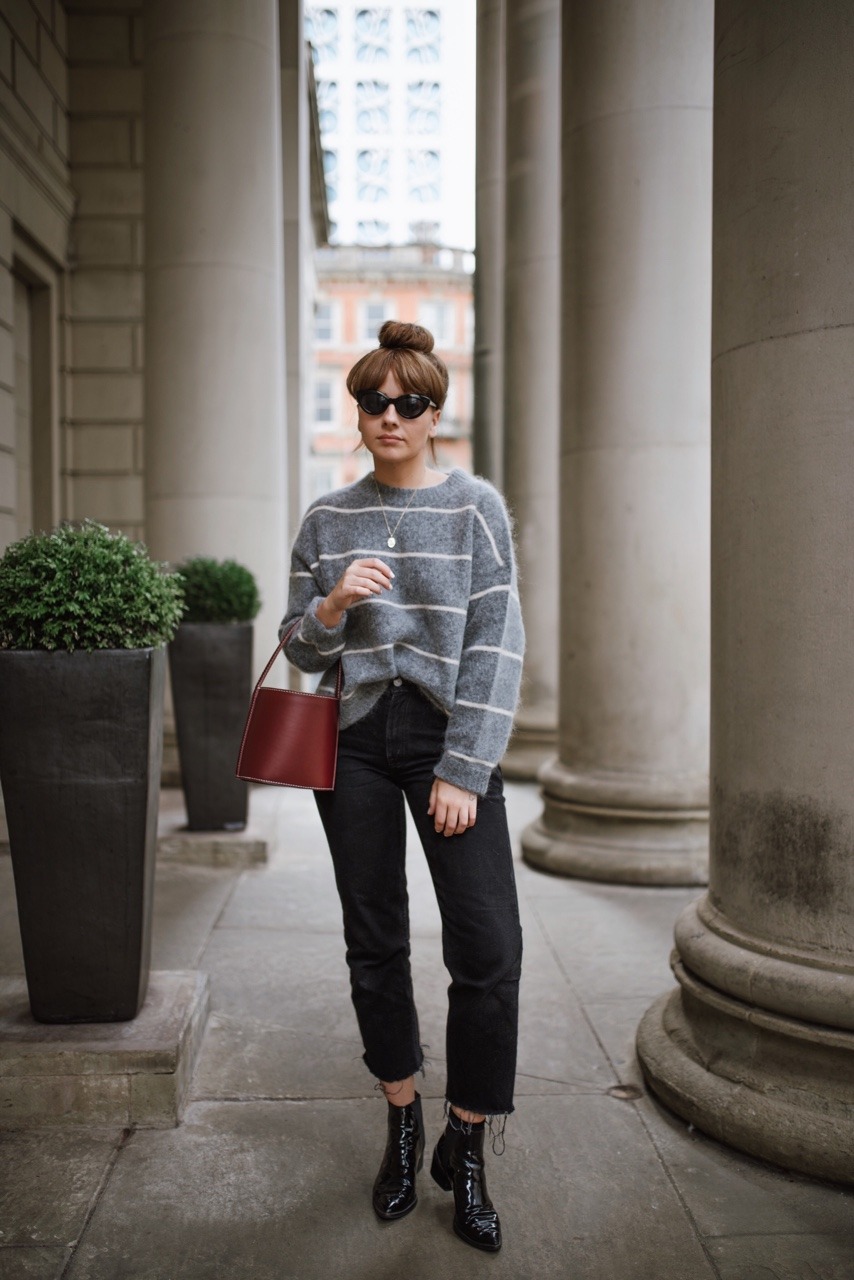 One of my first and quite exciting autumn/winter purchases comes in the form of this striped jumper by Acne Studios – they are a brand I lust over constantly, and I definitely feel that they can be trusted when it comes to investment basics. Whether it’s their famous leather jackets, scarfs, or pointed boots. I knew that I wanted to invest in some good knitwear this year – ones that won’t fall apart after a few washes and will keep me toasty warm on those frosty mornings. I love the colour combination of this jumper – it had popped up a few times and I’d done the old ‘screen shot it for later reference thing’ before finally taking the plunge. I couldn’t be more pleased with it and definitely feel that it’s going to be one of those jumpers I’ll wear over and over again until it gets holes in it.