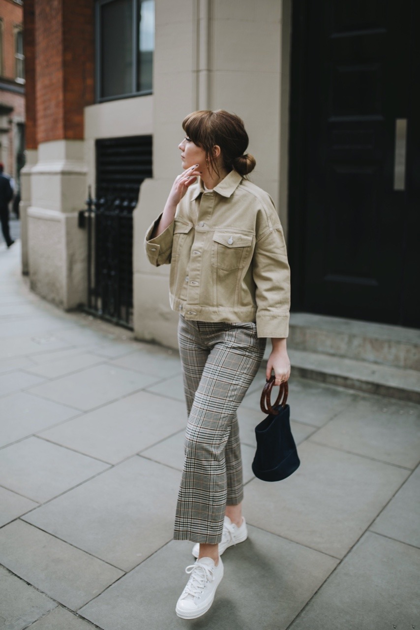 A pair of statement trousers like this are a great way to refresh any wardrobe because you can pick out the different colours and work from there – for this look I decided to work with the lighter/creamier shades of the material. It creates a light on your feet, almost spring feel to the outfit that’s perfect for everyday. However, If I wanted to dress the trousers up, I’d pick out the darker tones running through the checks – the blacks and the browns. They look amazing with some black snakeskin boots and a thin black turtle neck tucked in for the evening time – add a cross body bag and some gold accessories and you’re onto a winner…