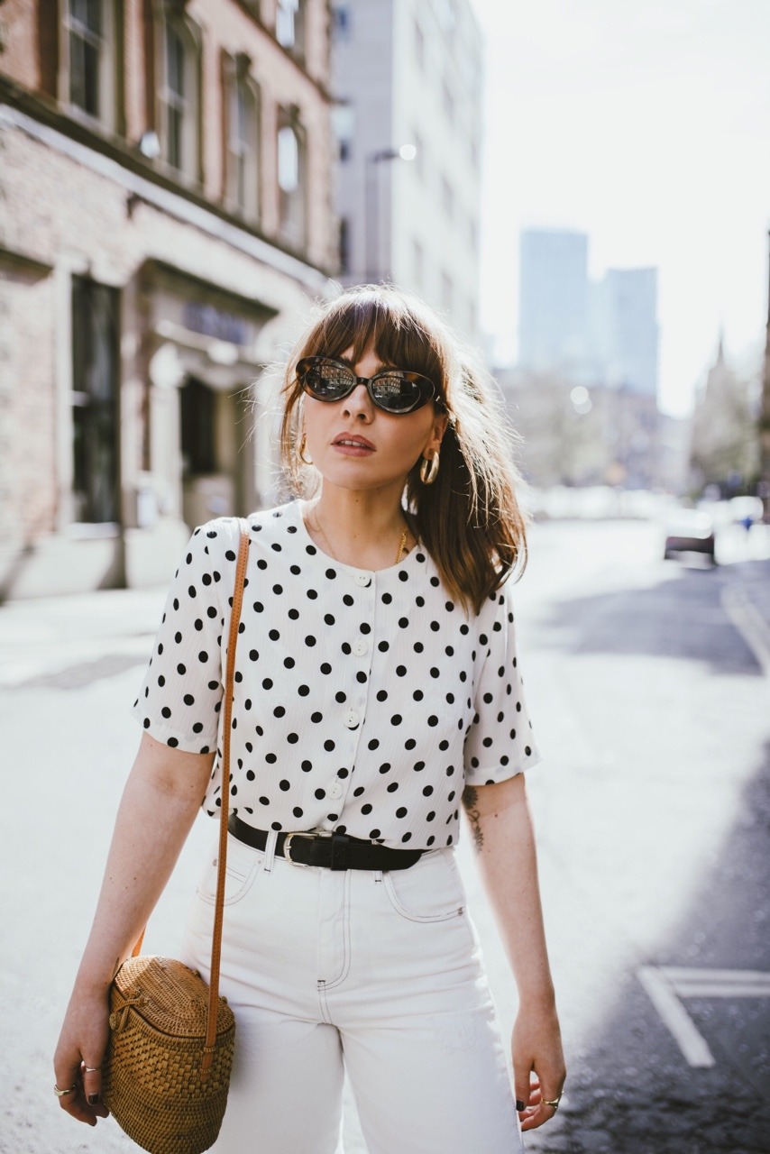 You might have seen me post this outfit over on Instagram with the image of Diana that inspired it – she’s not quite wearing polka dots here, but I love how she’s broken up an all white outfit with a black belt. It’s a great way to make all white feel a little less intimidating…