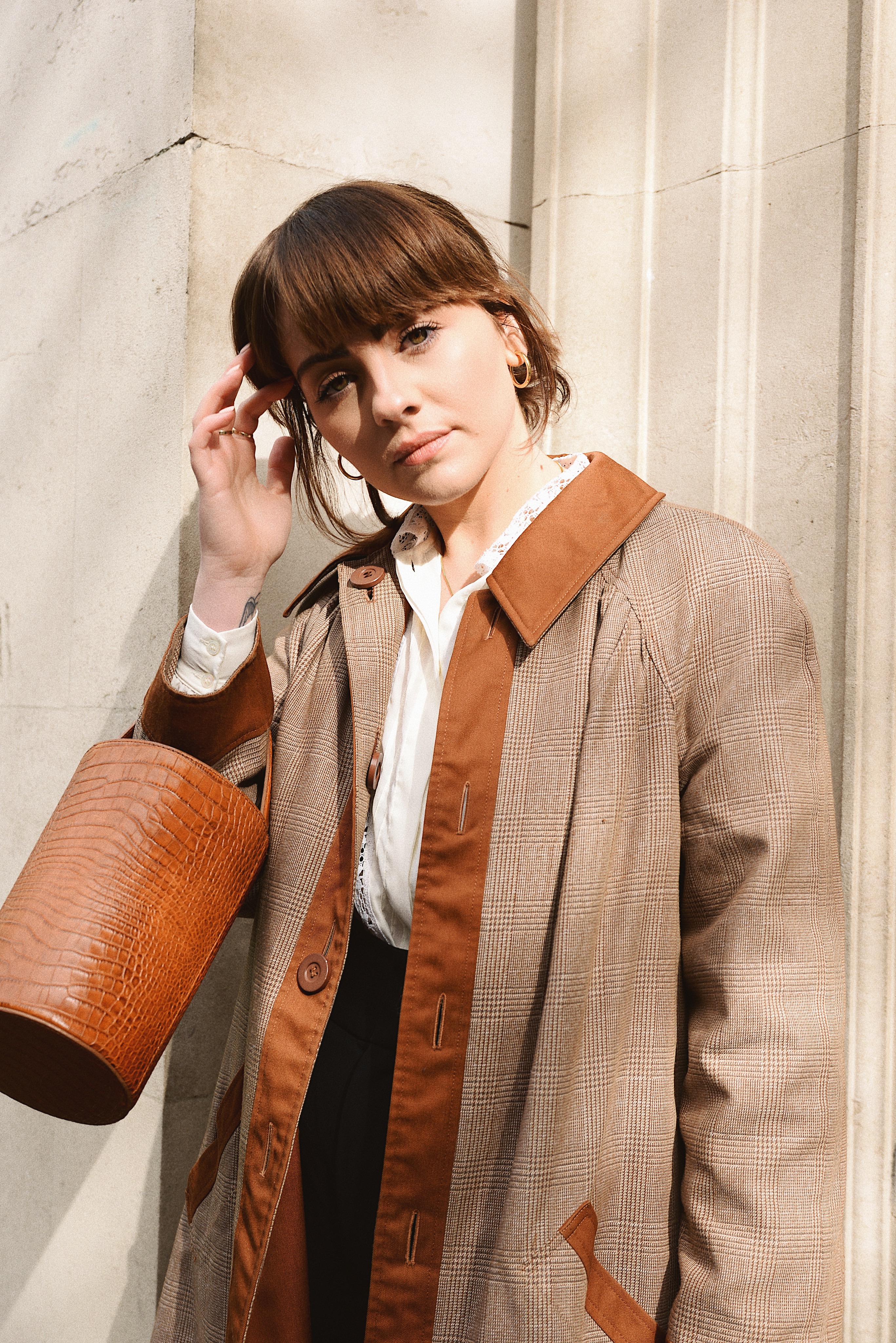 I’ve really fallen back in love with trench coats again recently – I forgot how easy they are to style, and they are perfect for throwing on in the evening too. For a simple daytime look, I’ve been gravitating towards black trousers, a blouse, and some plimsole style shoes. It feels very vintage inspired but also modern and minimal at the same time. Teamed with a scrunchie and a little bucket bag for a subtle girly touch…